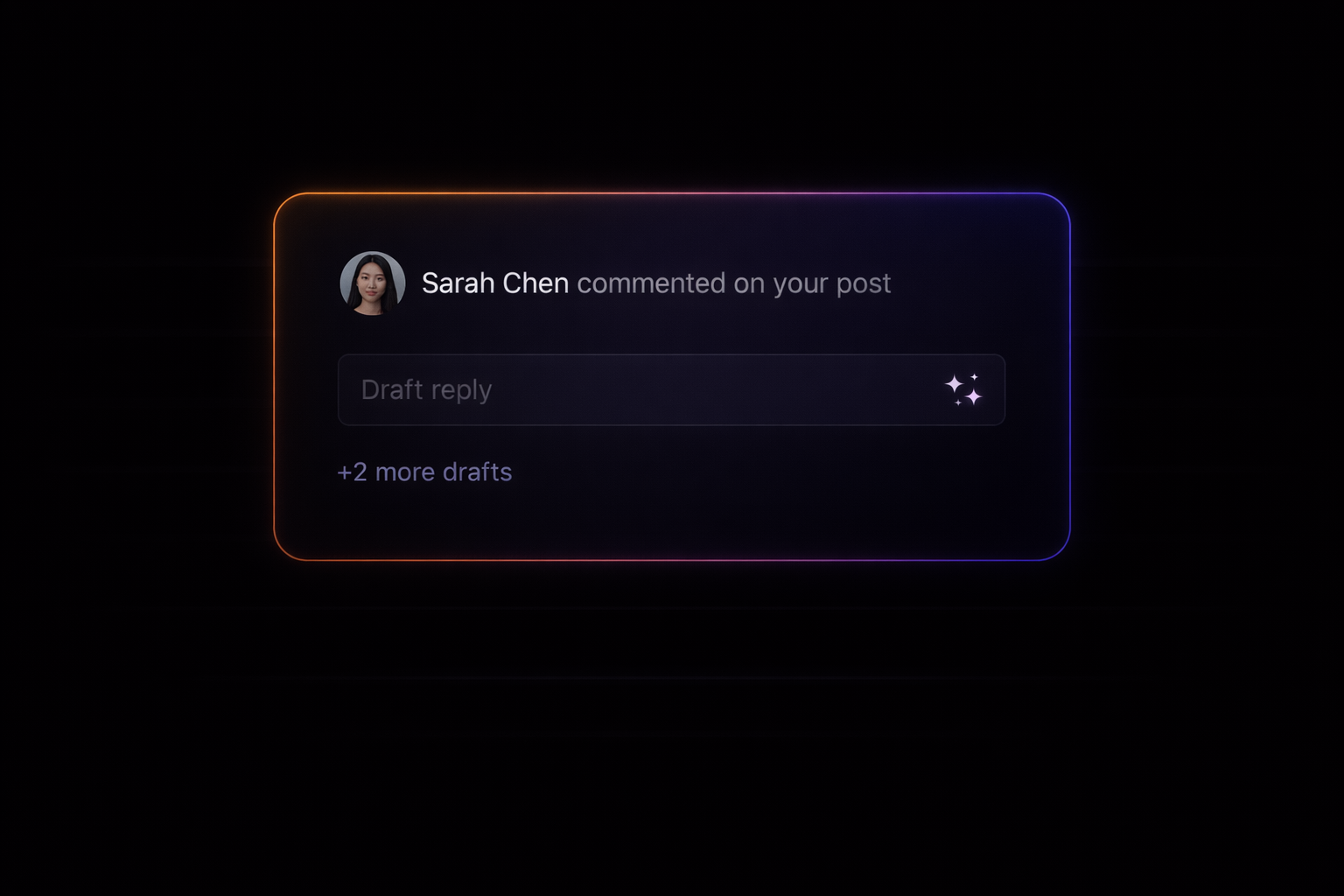 Get a starting point and respond in your own voice. Pick an intent, tweak if needed, post.